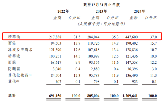 林清轩的产品矩阵薄如蝉翼。2024年,一瓶30ml定价749元的山茶花精华油独揽37%营收(4.48亿元),连续11年蝉联面部精华油销冠。